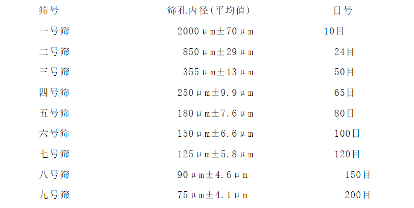 细粉:指能全部通过五号筛,并含能通过六号筛不少于95%的粉末;