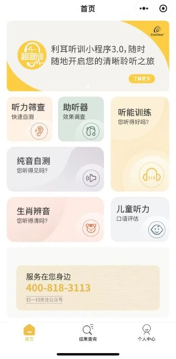 利耳听训3.0,所有人均可免费体验部分模块!您需要完成小程序分级测评后方可进入听能训练主页面,在初级、中级和高级页面会找到【免费体验】模块!您可以反复强化训练部分免费体验模块。