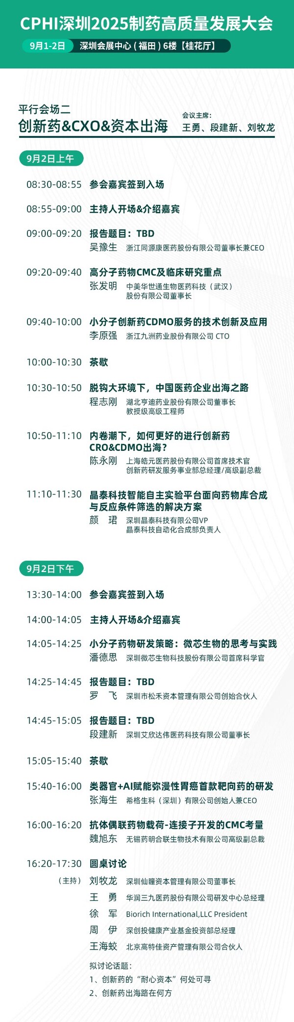 本次大会同期举办CPHI深圳2025,提供演讲赞助、圆桌论坛赞助、资料入袋、易拉宝等赞助合作机会,欢迎参会参展。