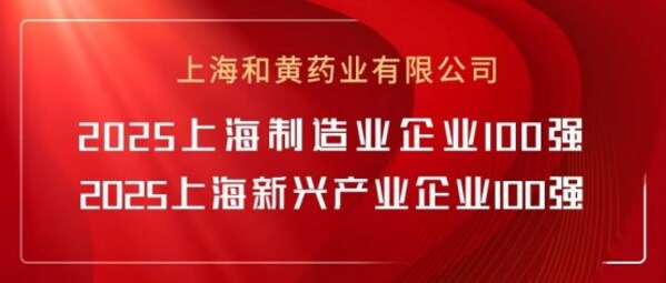 上海2025年10月13日 /美通社/ -- 日前,上海市企业联合会、上海市企业家协会、上海市经济团体联合会和解放日报社在中国金融信息中心联合召开"2025上海百强企业新闻发布会"。会上发布了"2025上海制造业企业100强""2025上海新兴产业企业100强"等榜单。上海和黄药业凭借稳健的发展业绩与持续的创新投入,再次荣登上海制造业企业100强和上海新兴产业企业100强榜单。