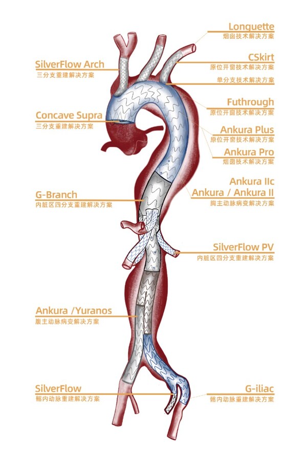 先健弓部分支重建原位开窗技术创新产品矩阵
