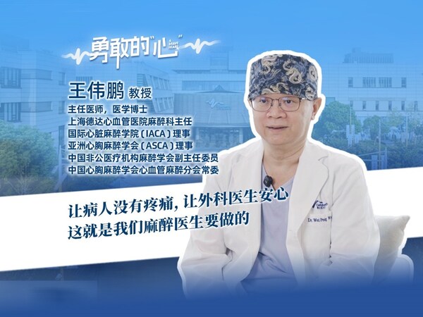 上海2025年12月15日 /美通社/ -- 近日,上海德达心血管医院推出《勇敢的心》系列视频第六期,与麻醉科主任王伟鹏展开对话。这位拥有40年麻醉医生工作经历、身列中国心胸麻醉学会心血管麻醉分会常委及亚洲心胸麻醉学会(ASCA)常委的医者,讲述了自己在生死边缘守护生命的动人故事。他不是聚光灯下的"主角",却凭借精湛技术与深厚学养,成为手术室里的"定海神针"。从直面心脏破裂的极限挑战,到应对高龄与极低龄患者的复杂病情;从见证麻醉技术发展,到推动中国心血管医疗模式改变,王伟鹏的每一步,都如同一座坚实的桥梁,连接着医学的严谨与生命的温度。