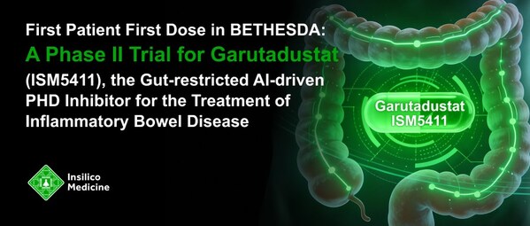 上海2026年1月12日 /美通社/ -- 由生成式人工智能驱动的临床阶段生物医药科技公司英矽智能(Insilico Medicine)今日宣布,公司已在一项名为BETHESDA的IIa期临床试验(NCT07265570)中完成其创新PHD抑制剂ISM5411的首例受试者给药。该创新候选药物由英矽智能自有生成式AI平台Pharma.AI辅助开发,具有肠道限制性,用于炎症性肠病(IBD)的治疗,其通用名Garutadustat近期获得美国通用名委员会(USAN)正式批准。