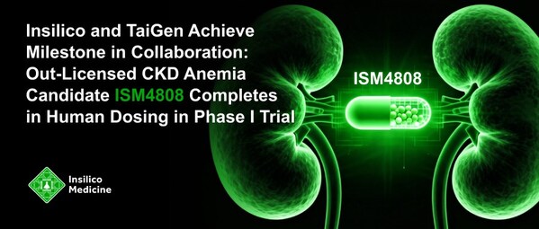 上海2026年3月6日 /美通社/ -- 由生成式人工智能(AI)驱动的临床阶段生物医药科技公司英矽智能(Insilico Medicine, 03696.HK)宣布,公司此前对外授权给太景医药(太景*-KY, 4157)的慢性肾病(CKD)贫血创新药ISM4808已达成首个协议里程碑。近日,太景医药已顺利完成该项AI驱动的PHD抑制剂一期临床试验的首例受试者入组及给药。