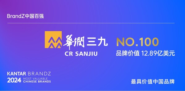 在刚刚揭晓的2024凯度BrandZ最具价值中国品牌100强榜单中,华润三九名列第100位,这也是华润三九第四次跻身百强之列。999品牌确立之初就处处体现着以关爱消费者健康、打造高质量产品为己任的品牌文化。