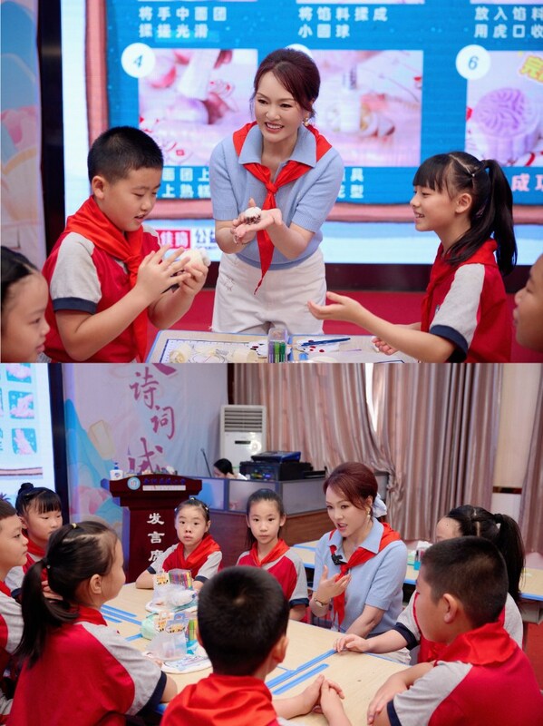 在学生们清洁双手后,也深刻意识到"一双干净的小手是重要的健康第一步"。现场随即迎来了"敬师恩,送安康" 学做月饼公益体验活动,李文利女士带领学生们共同完成揉面、包馅、压模等月饼制作步骤,还用香皂制作了富有创意的皂雕月饼,在动手实践中提前感受中秋团圆氛围,也在互动交流中传递公益温暖。孩子们在欢乐的实践中,直观体会到健康卫生习惯的重要性。这一课堂让健康理念以更生动、更贴近生活的方式深入人心。