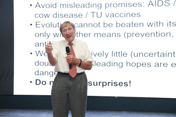 上海2025年10月24日 /美通社/ -- 2025年10月20日,上海细胞治疗集团再度迎来世界级科学巨匠——1996年诺贝尔生理学或医学奖获得者罗夫•辛克纳吉(Rolf M. Zinkernagel)教授到访交流,并在上海细胞治疗集团做学术报告:Immune responses against viruses and tumors。上海细胞治疗集团董事长兼CEO钱其军、上海细胞治疗集团COO兼新药BG董事长孙艳参加了交流及讨论活动。