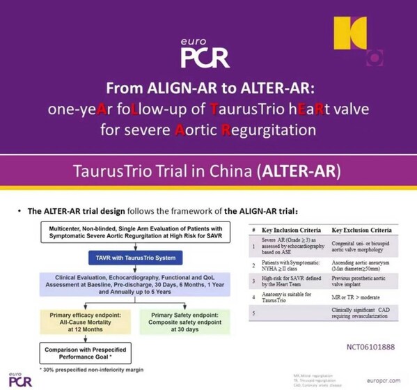 坚实的临床数据是验证产品核心竞争力的关键支撑,更是链接技术研发与临床应用的重要桥梁。TaurusTrio国内注册临床ALTER-AR研究是一项前瞻性、多中心、单臂注册研究,自2023年7月入组第一例患者后在不到半年时间里共纳入116例中国症状性重度主动脉瓣反流患者,研究设计遵循ALIGN-AR国际研究框架,涵盖全国19家结构性心脏病中心。