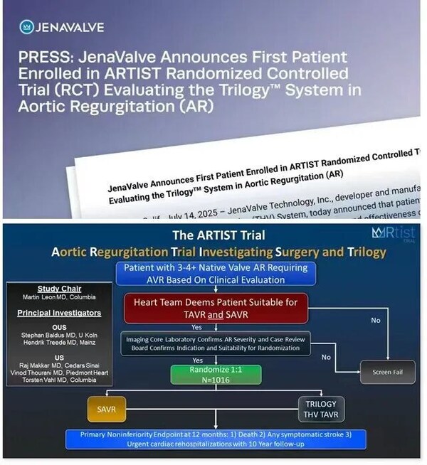 此外,针对该器械的TAVR与SAVR在AR治疗领域的国际多中心头对头随机对照试验ARTIST研究仍在持续入组推进中,旨在进一步验证其在更广泛人群中的治疗效果,为其全球化临床应用积累循证医学证据。其结果不仅将影响未来的临床指南修订,更可能让TAVR从 "高风险患者的备选" 升级为更广泛人群的一线治疗方案。